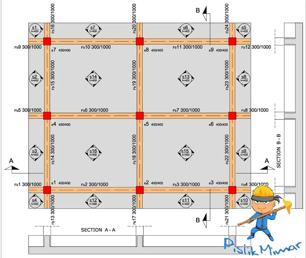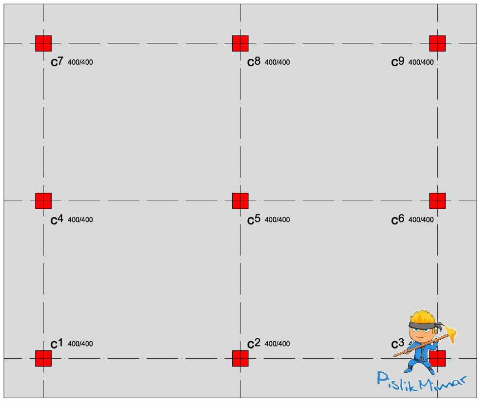 So the area I shared with you above represents the dimensions of the raft foundation and the area painted in red represents the Column System.